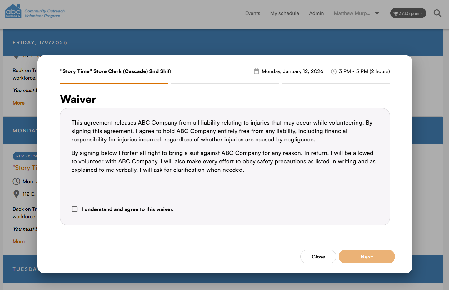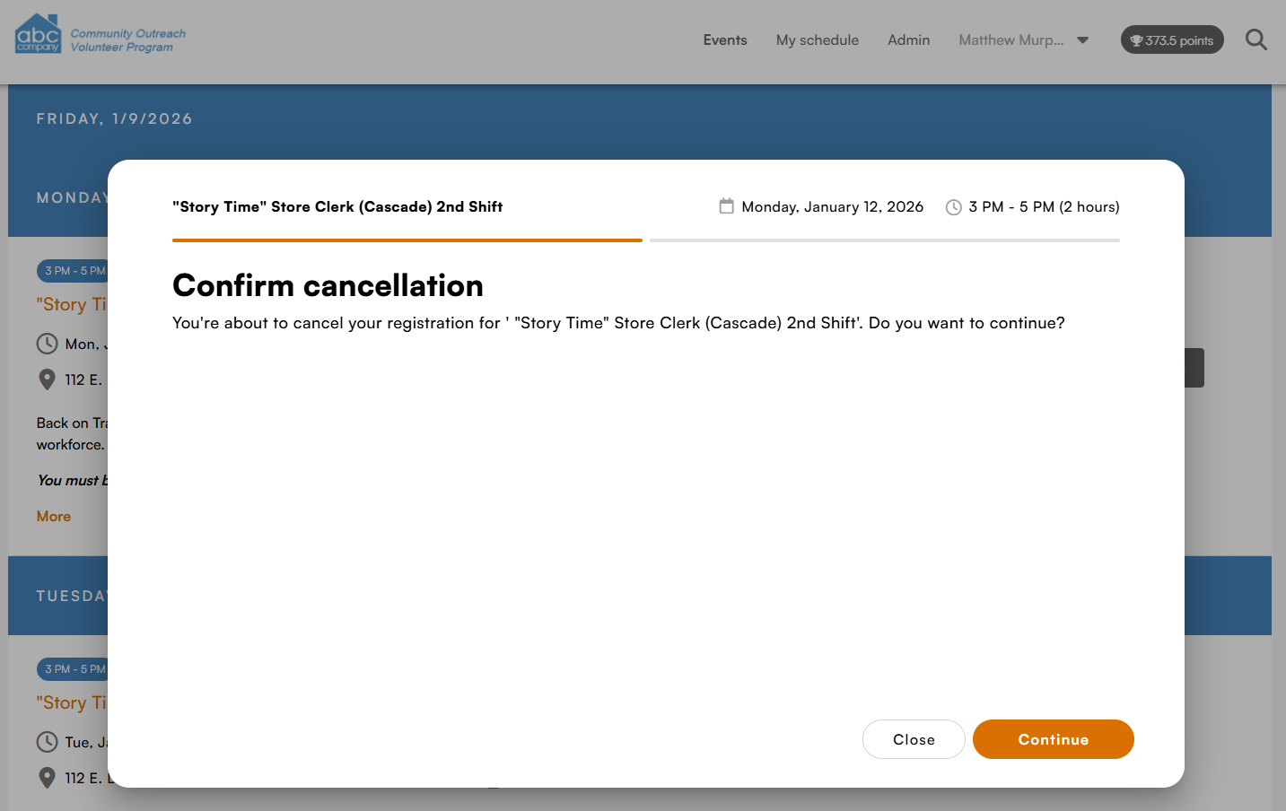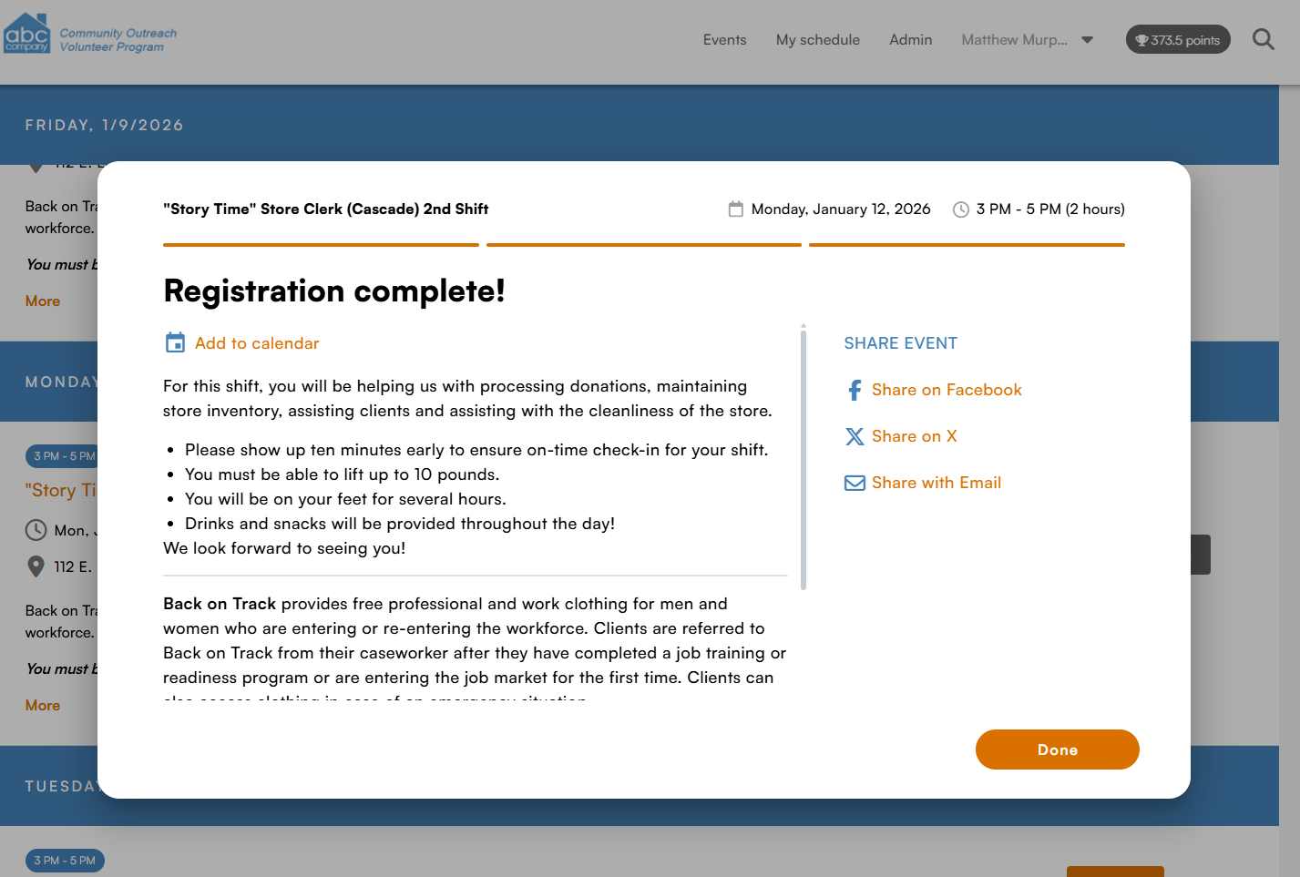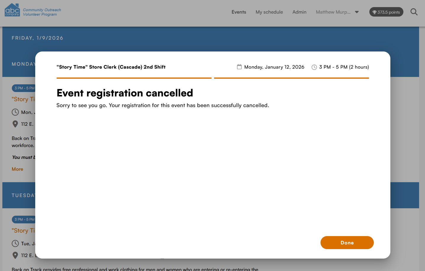 The interface a volunteer uses to register for an event has been modernized.