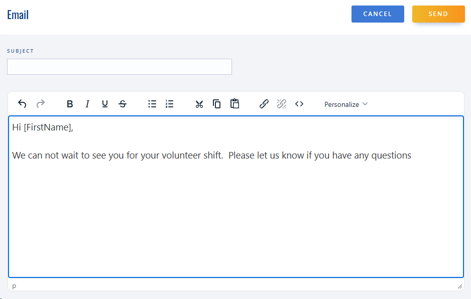 Volunteer Name Merge Fields in Emails